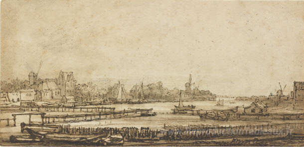 Nous vous proposons une reproduction artisanale sur toile du célèbre tableau 'Voir sur l'Amstel depuis le rempart' de Rembrandt, provenant du Musée de la Reproduction.