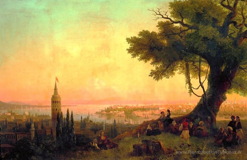 Nous vous proposons une reproduction artisanale sur toile du célèbre tableau 'Vue de Constantinople par la lumière du soir' de Ivan Aivazovsky, provenant du Musée de la Reproduction.
