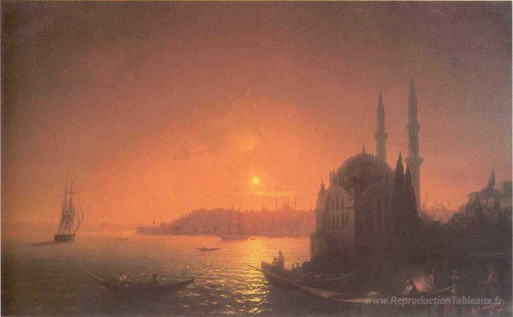 Nous vous proposons une reproduction artisanale sur toile du célèbre tableau 'Vue de Constantinople par Moonlight' de Ivan Aivazovsky, provenant du Musée de la Reproduction.