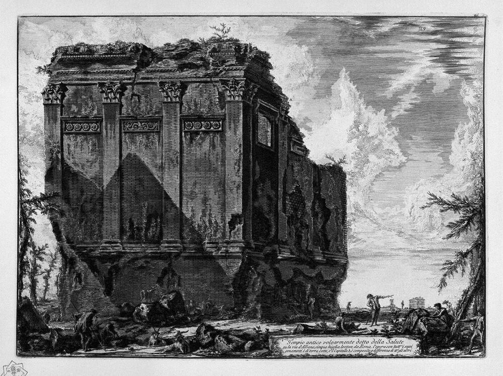 Nous vous proposons une reproduction artisanale sur toile du célèbre tableau 'Vue du temple d'Hercule dans la ville de Cora' de Giovanni Battista Piranesi, provenant du Musée de la Reproduction.