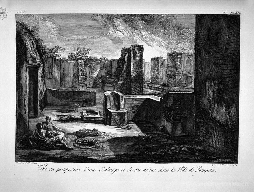 Nous vous proposons une reproduction artisanale sur toile du célèbre tableau 'Vue en perspective du thermopolium' de Giovanni Battista Piranesi, provenant du Musée de la Reproduction.