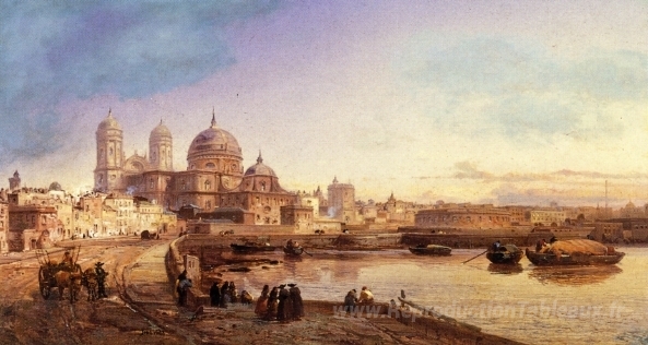 Nous vous proposons une reproduction artisanale sur toile du célèbre tableau 'Vue sur la côte portugaise' de James Webb , provenant du Musée de la Reproduction.
