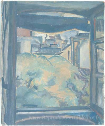 Nous vous proposons une reproduction artisanale sur toile du célèbre tableau 'Vue sur les toits de Paris' de Le Corbusier, provenant du Musée de la Reproduction.
