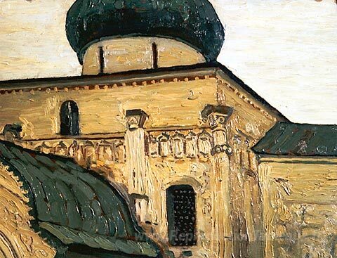 Nous vous proposons une reproduction artisanale sur toile du célèbre tableau 'Yuryev-Polsky. Cathédrale de St. George.' de Nicholas Roerich, provenant du Musée de la Reproduction.