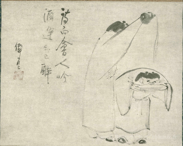 Nous vous proposons une reproduction artisanale sur toile du célèbre tableau 'Trempé' de Sengai, provenant du Musée de la Reproduction.