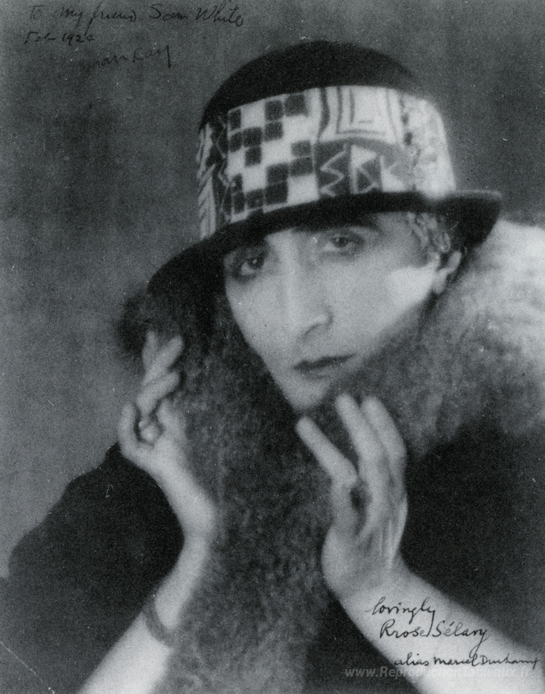 Nous vous proposons une reproduction artisanale sur toile du célèbre tableau 'Rrose Selavy Alias Marcel Duchamp' de Man Ray, provenant du Musée de la Reproduction.