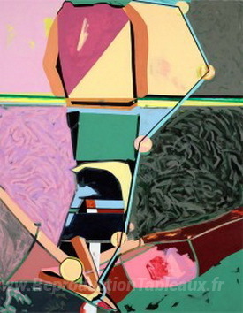 Nous vous proposons une reproduction artisanale sur toile du célèbre tableau 'En obliquo, La Canopee' de Herve Telemaque, provenant du Musée de la Reproduction.