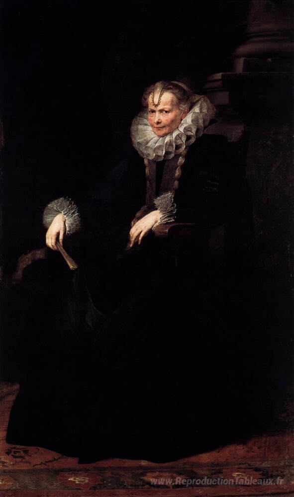 Nous vous proposons une reproduction artisanale sur toile du célèbre tableau 'Épouse d'un génois aristocratique' de Anthony van Dyck, provenant du Musée de la Reproduction.