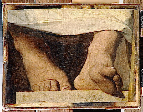 Nous vous proposons une reproduction artisanale sur toile du célèbre tableau 'Étude pour l'apothéose d'Homère, les pieds d'Homère' de Jean Auguste Dominique Ingres, provenant du Musée de la Reproduction.