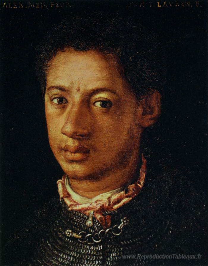 Nous vous proposons une reproduction artisanale sur toile du célèbre tableau 'Alessandro de 'medici' de Agnolo Bronzino, provenant du Musée de la Reproduction.