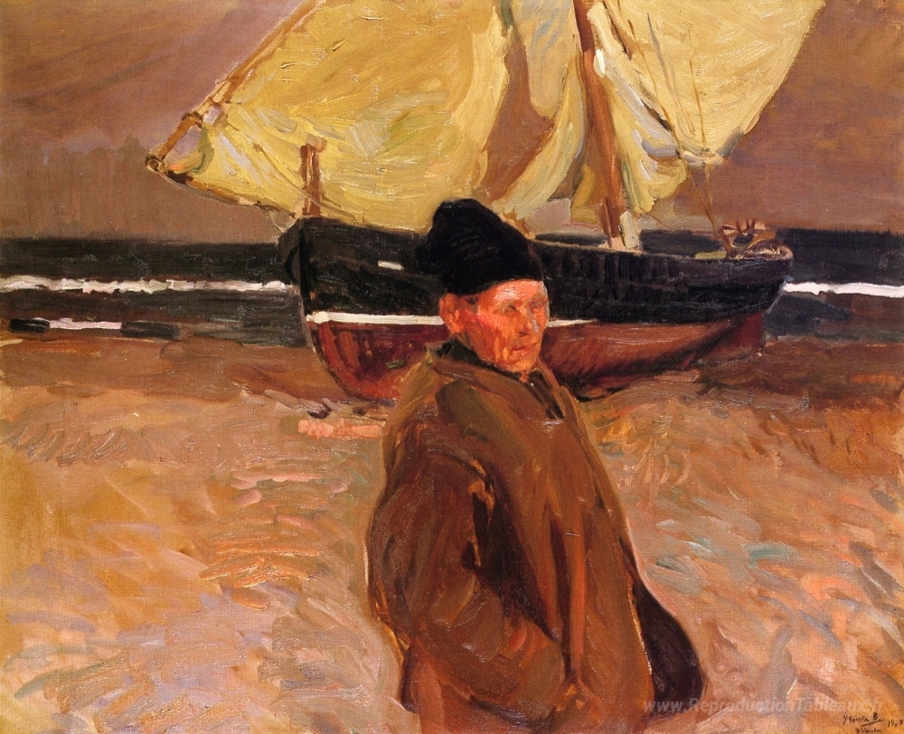 Nous vous proposons une reproduction artisanale sur toile du célèbre tableau 'Ancien pêcheur de valence' de Joaquín Sorolla, provenant du Musée de la Reproduction.