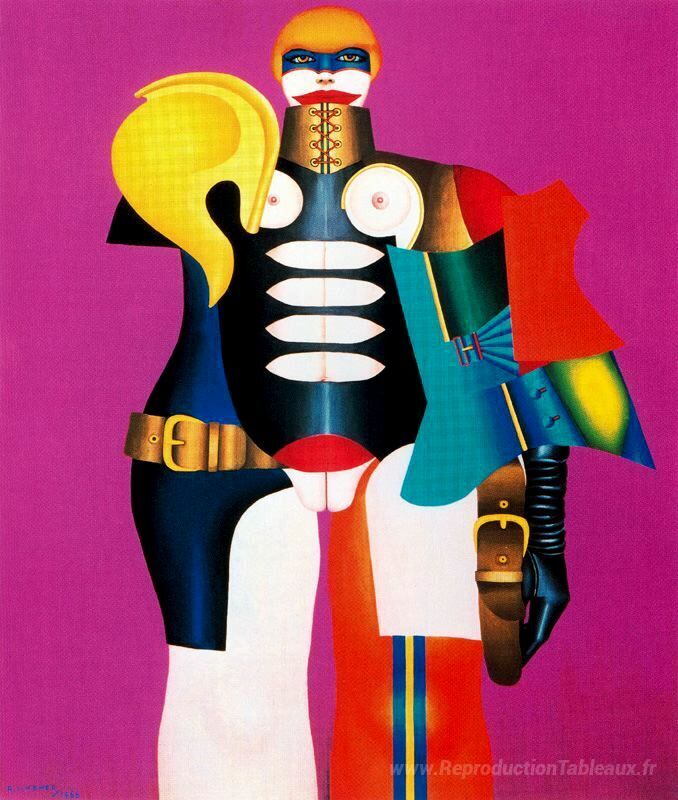 Nous vous proposons une reproduction artisanale sur toile du célèbre tableau 'Ange en moi' de Richard Lindner, provenant du Musée de la Reproduction.