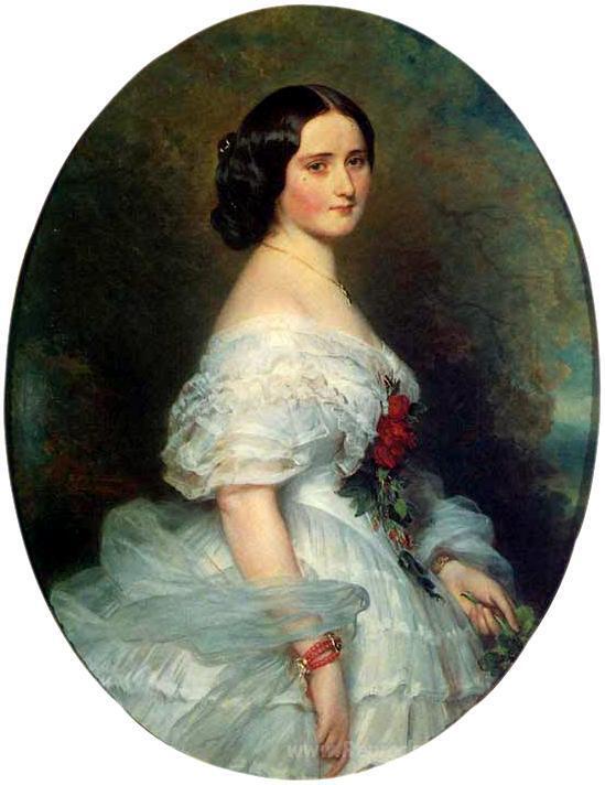 Nous vous proposons une reproduction artisanale sur toile du célèbre tableau 'Anna Dollfus, Baronness de Bourging' de Franz Xaver Winterhalter, provenant du Musée de la Reproduction.