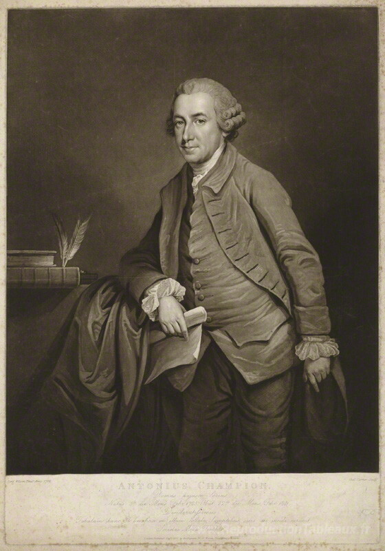 Nous vous proposons une reproduction artisanale sur toile du célèbre tableau 'Anthony Champion' de Charles Turner, provenant du Musée de la Reproduction.