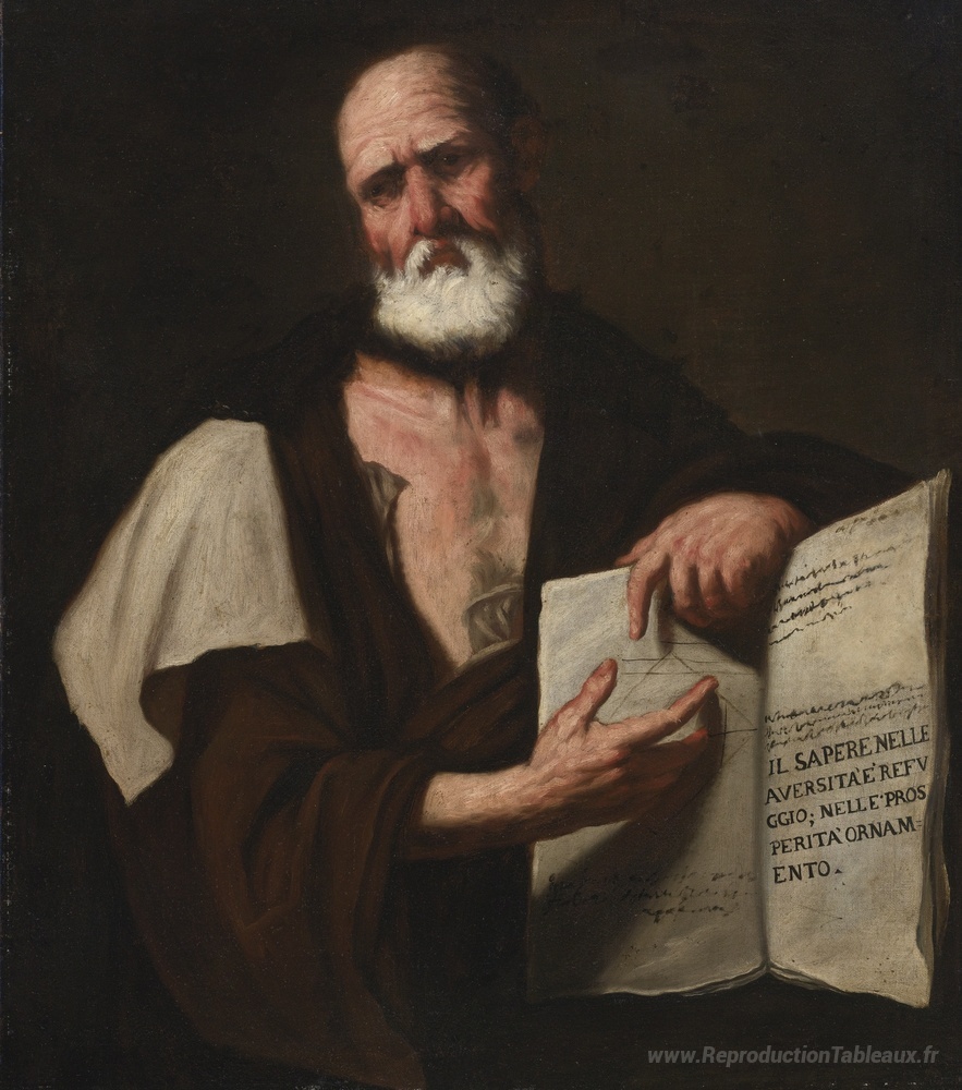 Nous vous proposons une reproduction artisanale sur toile du célèbre tableau 'Aristote' de Luca Giordano, provenant du Musée de la Reproduction.