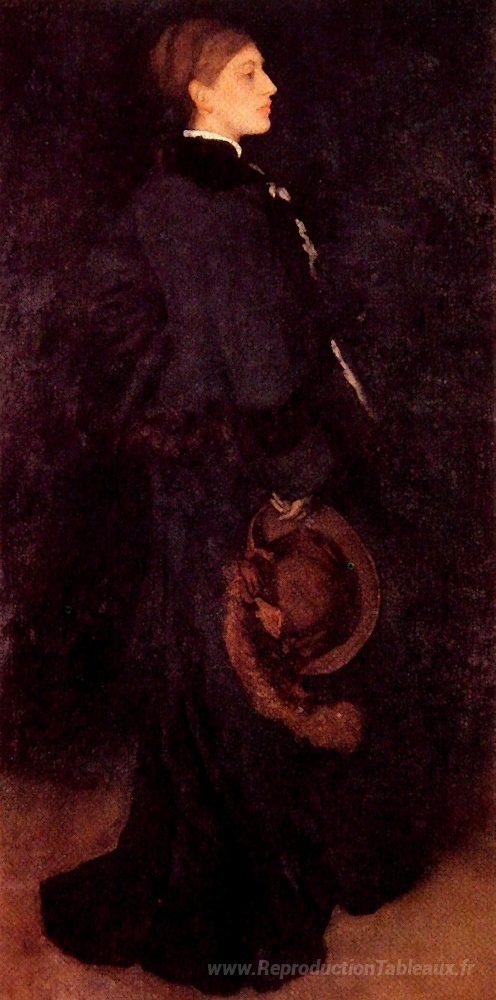 Nous vous proposons une reproduction artisanale sur toile du célèbre tableau 'Arrangement en marron et noir: portrait de Mlle Rosa Corder' de James McNeill Whistler, provenant du Musée de la Reproduction.