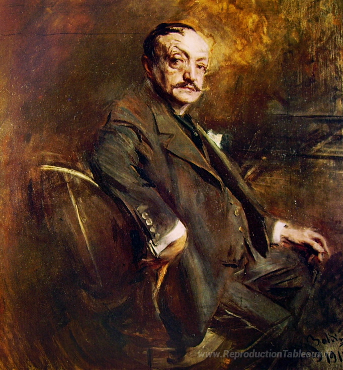 Nous vous proposons une reproduction artisanale sur toile du célèbre tableau 'Autoportrait' de Giovanni Boldini, provenant du Musée de la Reproduction.