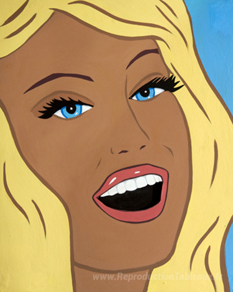 Nous vous proposons une reproduction artisanale sur toile du célèbre tableau 'Blonde souriante' de Marjorie Strider, provenant du Musée de la Reproduction.