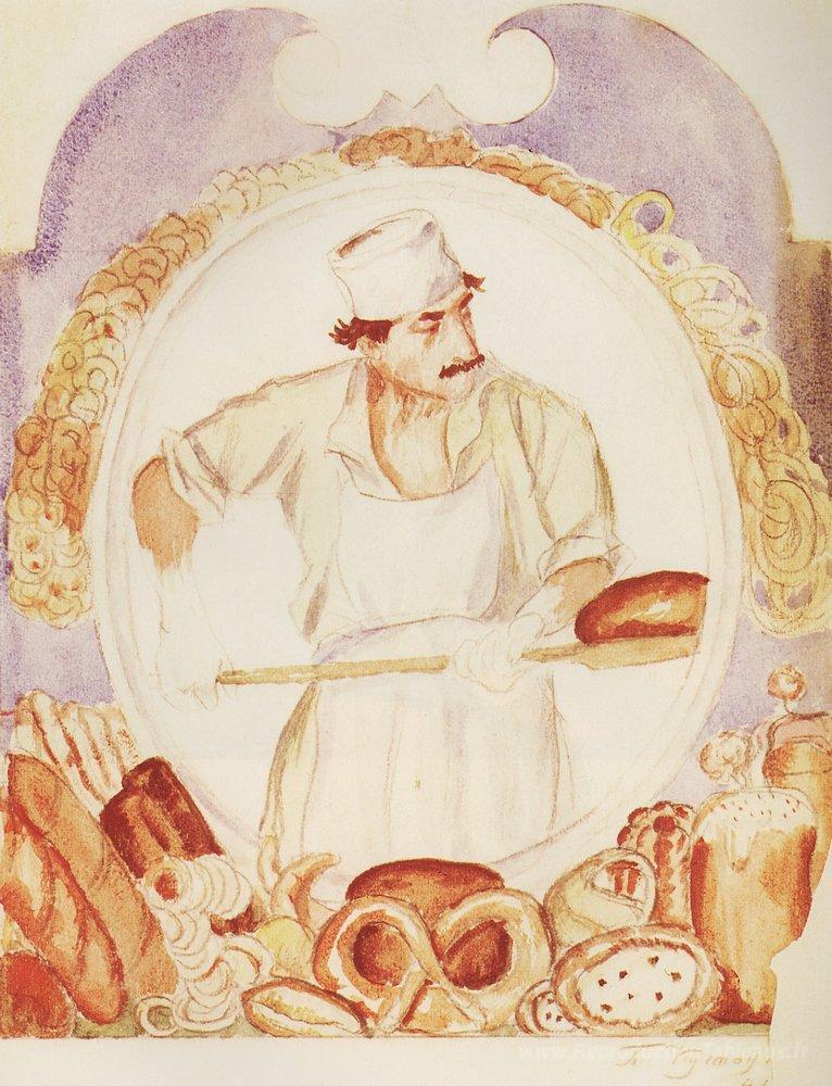 Nous vous proposons une reproduction artisanale sur toile du célèbre tableau 'boulanger' de Boris Kustodiev, provenant du Musée de la Reproduction.