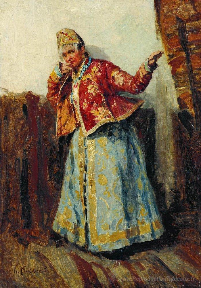 Découvrez l'élégance intemporelle des peintures à l'huile à travers notre collection exclusive, où chaque œuvre est une invitation à l'émerveillement. Parmi nos pièces phares, Boyaryshnya de l'artiste russe emblématique Konstantin Makovsky se distingue par sa richesse chromatique et sa saisissante représentation de la noblesse. Ce tableau, illustrant la beauté et la grâce d'une femme en tenue traditionnelle, est un exemple parfait du style réaliste du XIXe siècle, mariant habilement détails minutieux et atmosphère romantique.