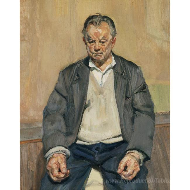 Nous vous proposons une reproduction artisanale sur toile du célèbre tableau 'Bruce Bernard assis' de Lucian Freud, provenant du Musée de la Reproduction.