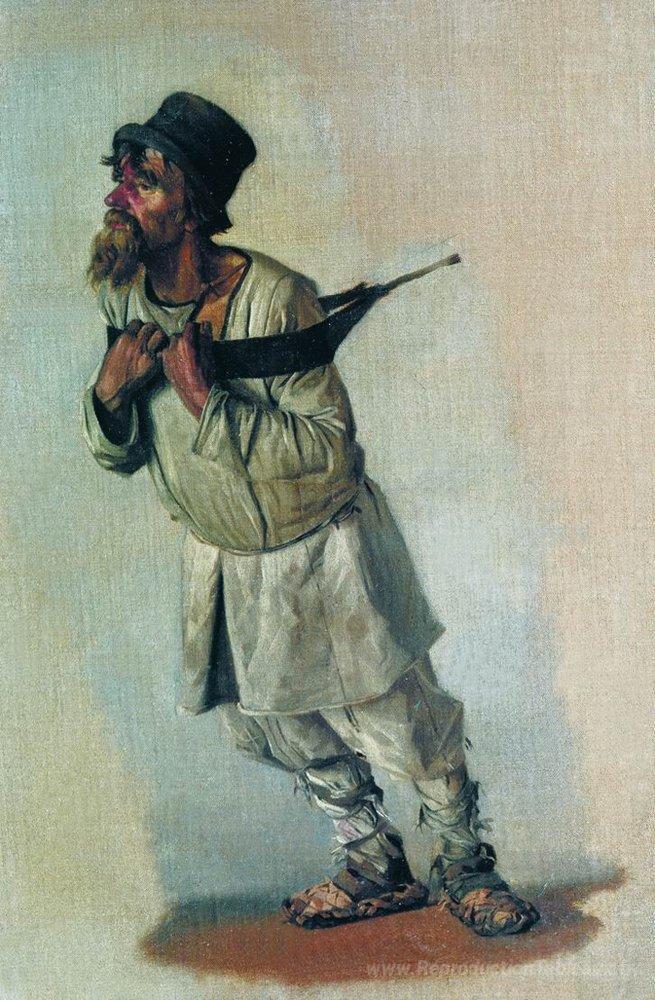 Nous vous proposons une reproduction artisanale sur toile du célèbre tableau 'Burlak qui tient la main sur la sangle' de Vasily Vereshchagin, provenant du Musée de la Reproduction.