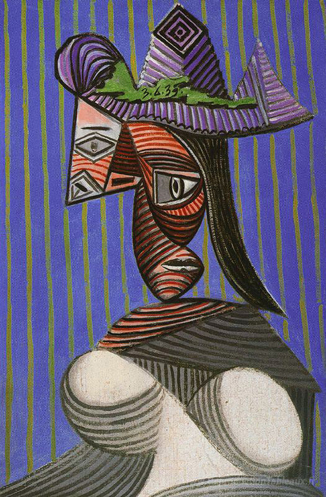 Nous vous proposons une reproduction artisanale sur toile du célèbre tableau 'Buste de femme' de Pablo Picasso, provenant du Musée de la Reproduction.