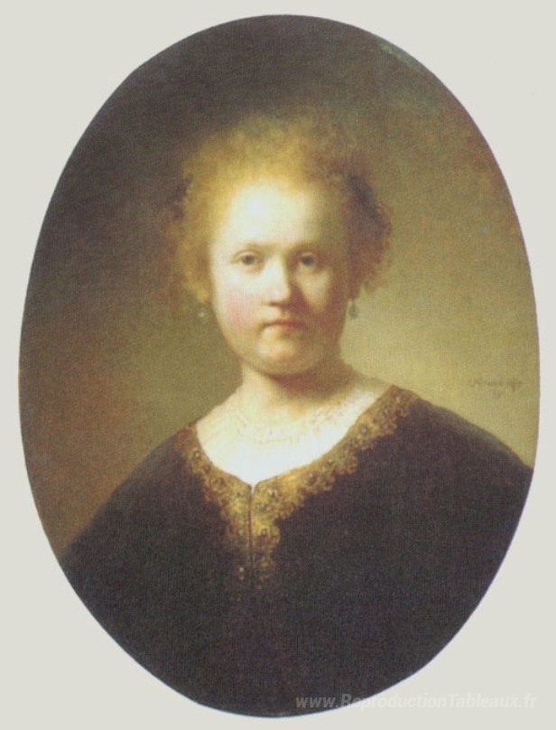 Nous vous proposons une reproduction artisanale sur toile du célèbre tableau 'Buste d'une jeune femme' de Rembrandt, provenant du Musée de la Reproduction.