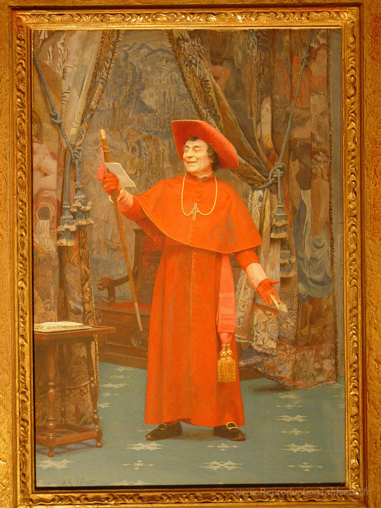 Nous vous proposons une reproduction artisanale sur toile du célèbre tableau 'Cardinal, lire une lettre' de Jehan Georges Vibert, provenant du Musée de la Reproduction.