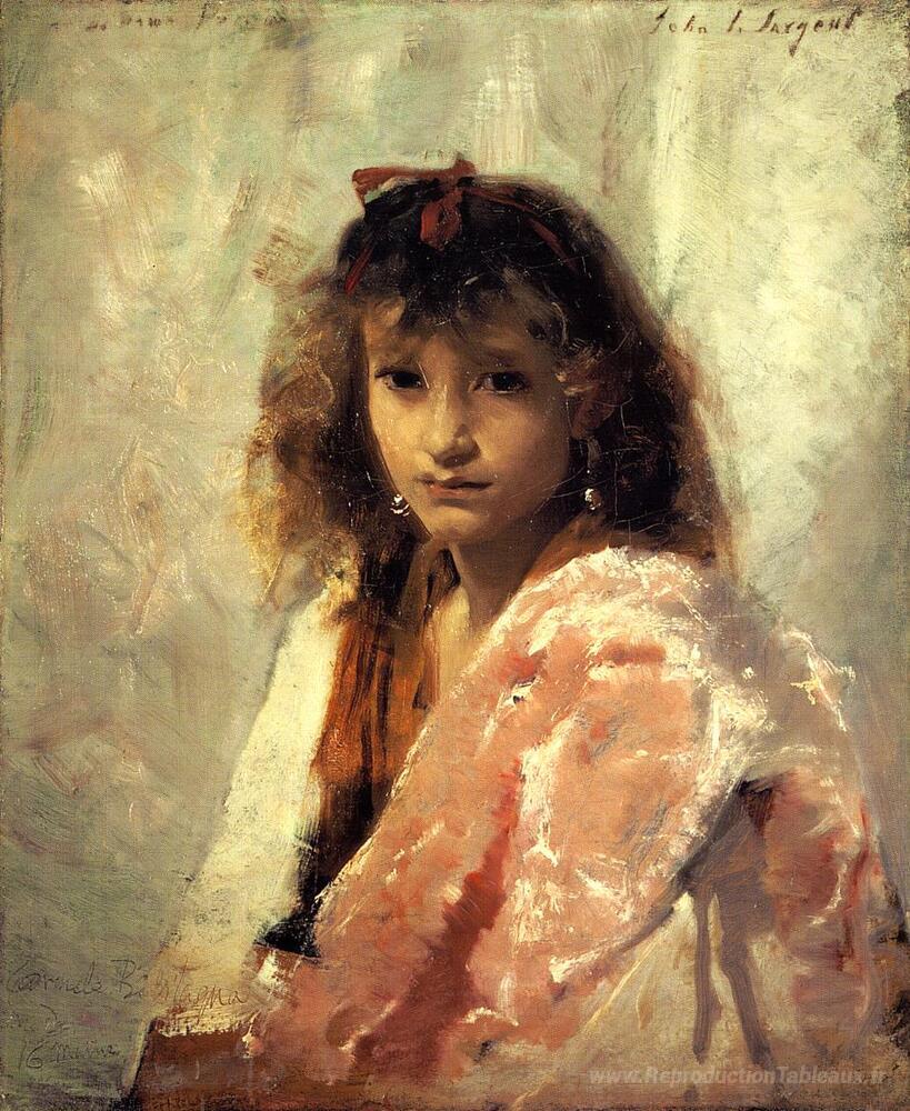 Nous vous proposons une reproduction artisanale sur toile du célèbre tableau 'Carmela Bertagna' de John Singer Sargent, provenant du Musée de la Reproduction.