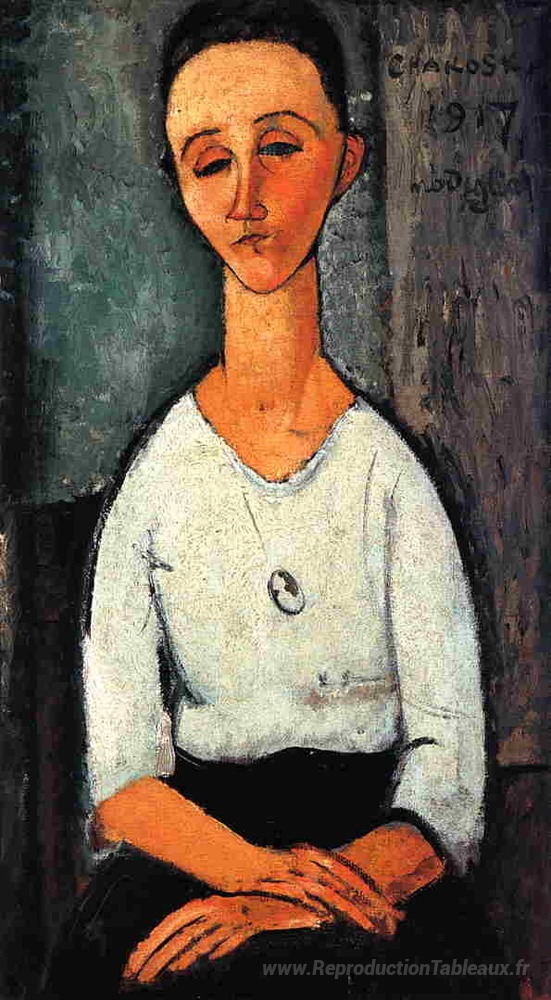 Nous vous proposons une reproduction artisanale sur toile du célèbre tableau 'Chakoska' de Amedeo Modigliani, provenant du Musée de la Reproduction.