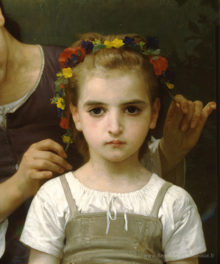 Nous vous proposons une reproduction artisanale sur toile du célèbre tableau 'Champs de rédaction' de William-Adolphe Bouguereau, provenant du Musée de la Reproduction.