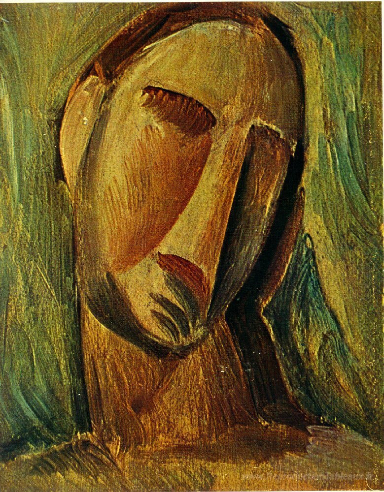 Nous vous proposons une reproduction artisanale sur toile du célèbre tableau 'Chef de femme' de Pablo Picasso, provenant du Musée de la Reproduction.