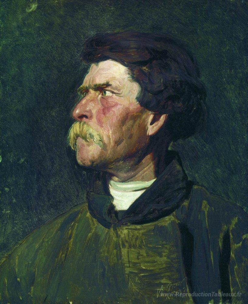 Nous vous proposons une reproduction artisanale sur toile du célèbre tableau 'Chef de paysan' de Ilya Repin, provenant du Musée de la Reproduction.