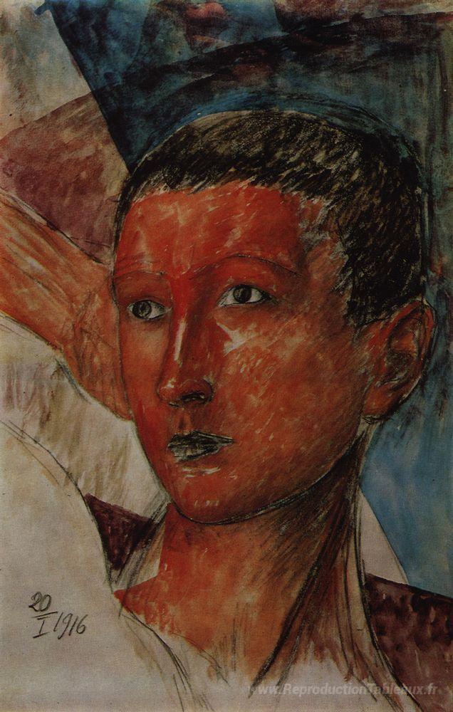 Nous vous proposons une reproduction artisanale sur toile du célèbre tableau 'Chef d'un garçon' de Kuzma Petrov-Vodkin, provenant du Musée de la Reproduction.
