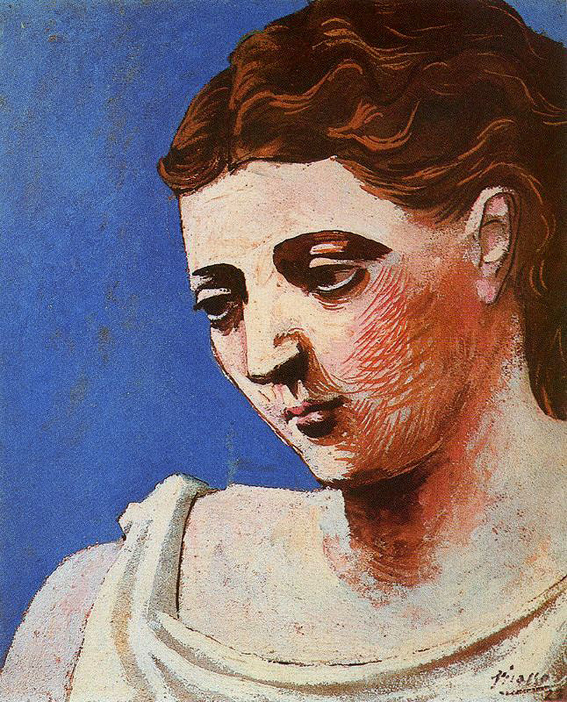 Nous vous proposons une reproduction artisanale sur toile du célèbre tableau 'Chef d'une femme' de Pablo Picasso, provenant du Musée de la Reproduction.