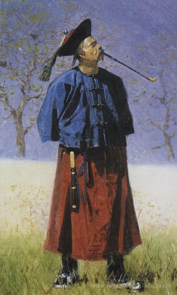 Nous vous proposons une reproduction artisanale sur toile du célèbre tableau 'Chinois' de Vasily Vereshchagin, provenant du Musée de la Reproduction.