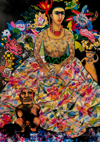 Nous vous proposons une reproduction artisanale sur toile du célèbre tableau 'Conservatoire (Frida et moi)' de Miriam Schapiro, provenant du Musée de la Reproduction.