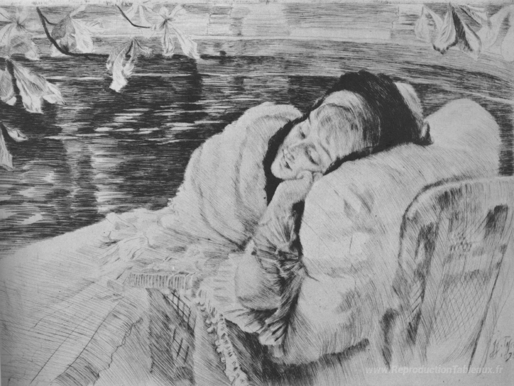 Nous vous proposons une reproduction artisanale sur toile du célèbre tableau 'Convalescenza' de James Tissot, provenant du Musée de la Reproduction.