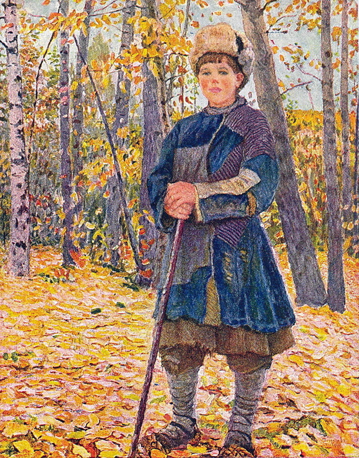 Nous vous proposons une reproduction artisanale sur toile du célèbre tableau 'Cow-boy' de Nikolay Bogdanov-Belsky, provenant du Musée de la Reproduction.