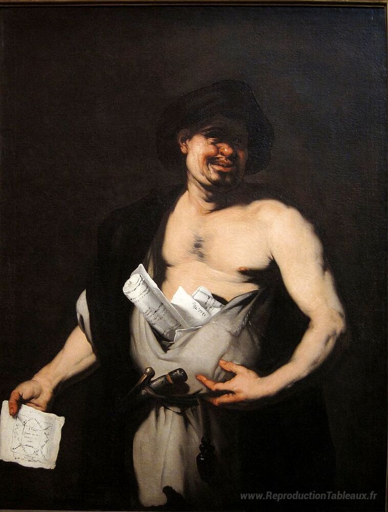 Nous vous proposons une reproduction artisanale sur toile du célèbre tableau 'Démocrite' de Luca Giordano, provenant du Musée de la Reproduction.