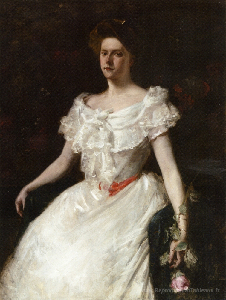 Nous vous proposons une reproduction artisanale sur toile du célèbre tableau 'Dame avec une rose' de William Merritt Chase, provenant du Musée de la Reproduction.