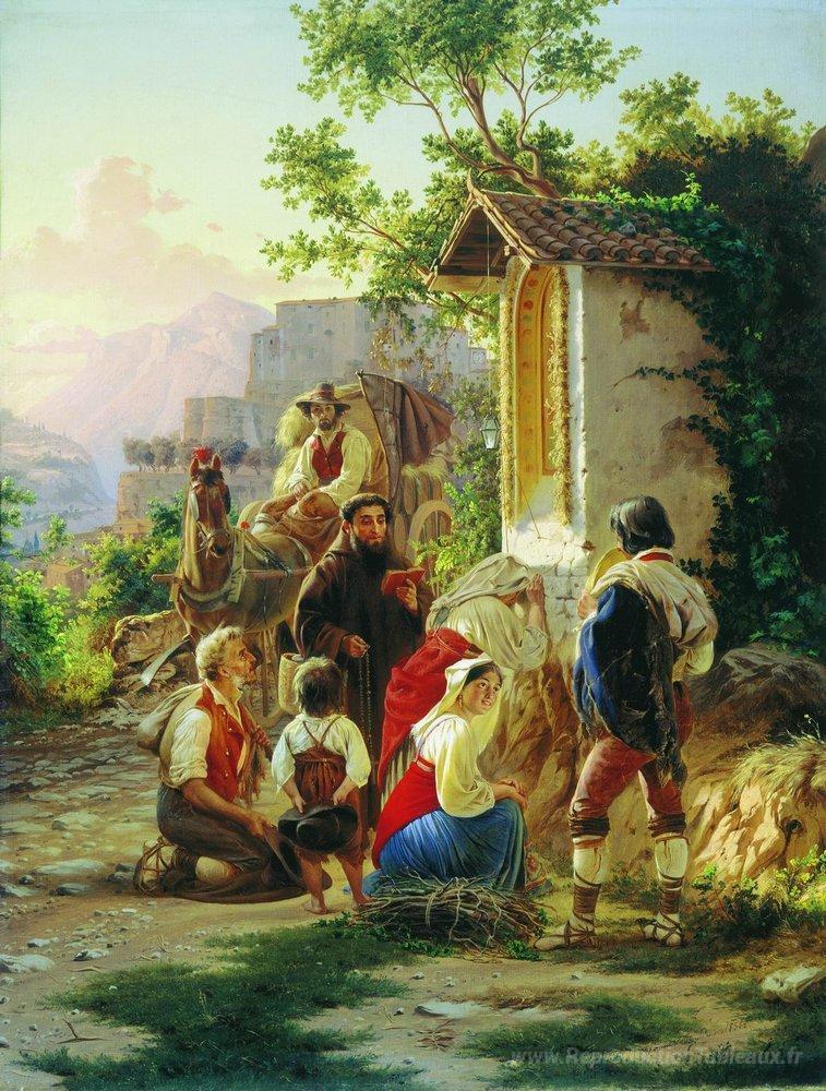 Nous vous proposons une reproduction artisanale sur toile du célèbre tableau 'Dans la chapelle' de Fyodor Bronnikov, provenant du Musée de la Reproduction.