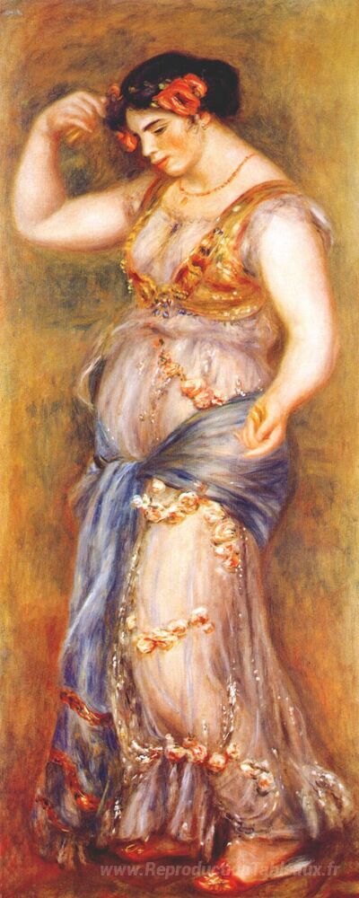 Nous vous proposons une reproduction artisanale sur toile du célèbre tableau 'Danseuse avec Castanettes' de Pierre-Auguste Renoir, provenant du Musée de la Reproduction.