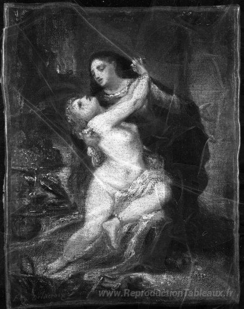 Nous vous proposons une reproduction artisanale sur toile du célèbre tableau 'Deux chiffres' de Eugene Delacroix, provenant du Musée de la Reproduction.