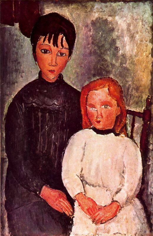 Nous vous proposons une reproduction artisanale sur toile du célèbre tableau 'Deux filles' de Amedeo Modigliani, provenant du Musée de la Reproduction.