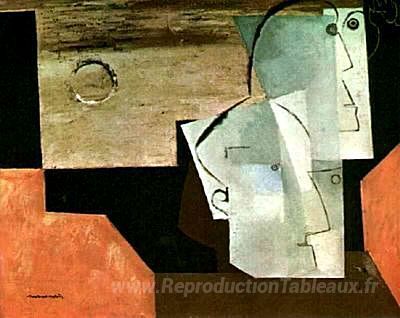 Nous vous proposons une reproduction artisanale sur toile du célèbre tableau 'Deux poètes' de Louis Marcoussis, provenant du Musée de la Reproduction.