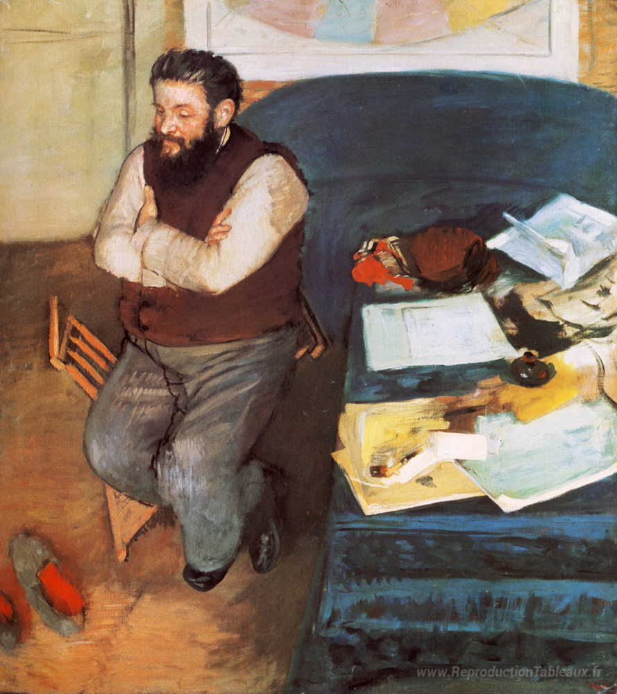 Nous vous proposons une reproduction artisanale sur toile du célèbre tableau 'Diego Martelli' de Edgar Degas, provenant du Musée de la Reproduction.