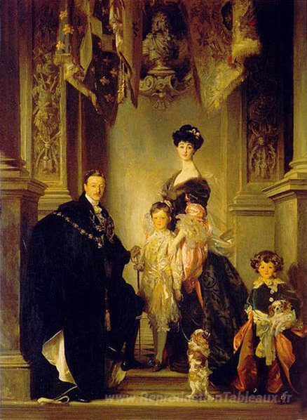 Nous vous proposons une reproduction artisanale sur toile du célèbre tableau 'Duke Marlborough Singer Sargent e famiglia' de Giovanni Boldini, provenant du Musée de la Reproduction.