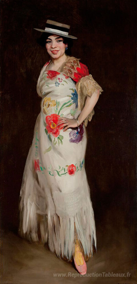 Nous vous proposons une reproduction artisanale sur toile du célèbre tableau 'El Tango' de Robert Henri, provenant du Musée de la Reproduction.